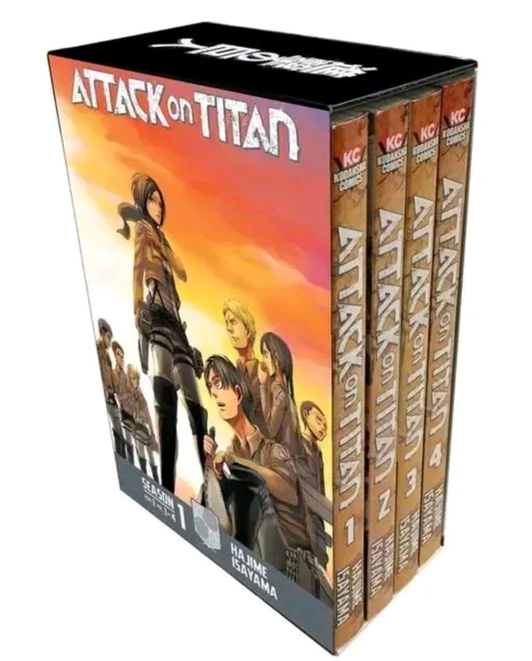 A gripping manga set of four Attack on Titan volumes, featuring intense action, shocking twists, and a dark storyline that explores humanity’s fight for survival against Titans.